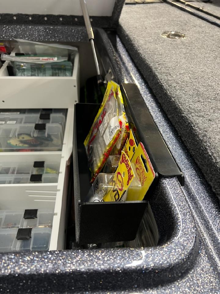 A unique sliding tray that will hang in any compartment. Great for storing soft plastics, hooks, or just about anything you can think of. This tray will hang in any compartment of your Phoenix Boat.
